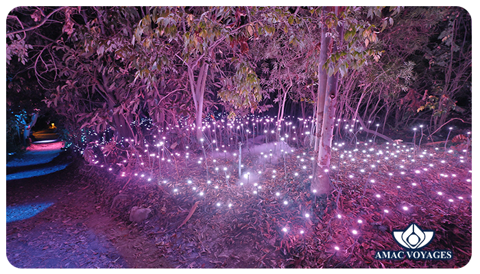 Ce parcours nocturne autoguidé transporte les visiteurs dans un univers féerique où la lumière, la musique et la nature se rencontrent pour une aventure sensorielle inoubliable.Sur un sentier de 1,5 km, vos clients exploreront 9 zones d’activation interactives, où l’illusion d’un ciel étoilé prenant vie leur offrira un spectacle fascinant avec un jeu de sons & lumières décoiffant.