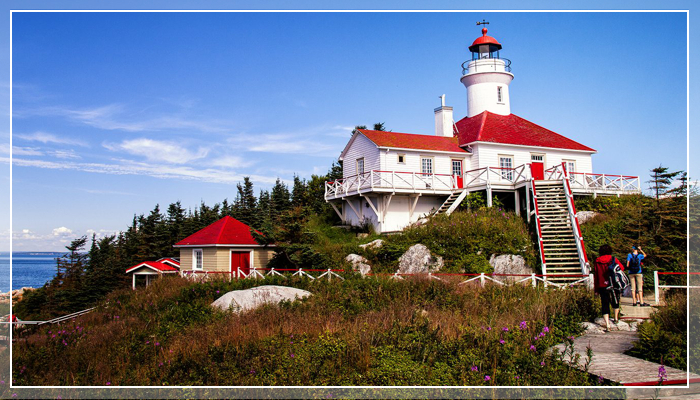 Poursuite du "roadtrip" vers l'incontournable parc Forillon, là où les montagnes se jettent d'une façon brutale dans l'océan Atlantique. Ses paysages grandioses de mer, de falaises et de montagnes s'étendent sur 244 km². La présence de dix formations rocheuses différentes, les colonies d'oiseaux marins et les énigmatiques plantes arctiques-alpines donnent au parc son caractère unique. Nous vous conseillons vivement de faire un petit pique-nique au Cap Bon-Ami. Sans doute le meilleur endroit pour observer les falaises de Forillon. Aussi, ne manquez pas de parcourir le sentier de randonnée pédestre de Grande-Gravequi témoigne du mode de vie des familles de pêcheurs de l'époque de la colonisation. |